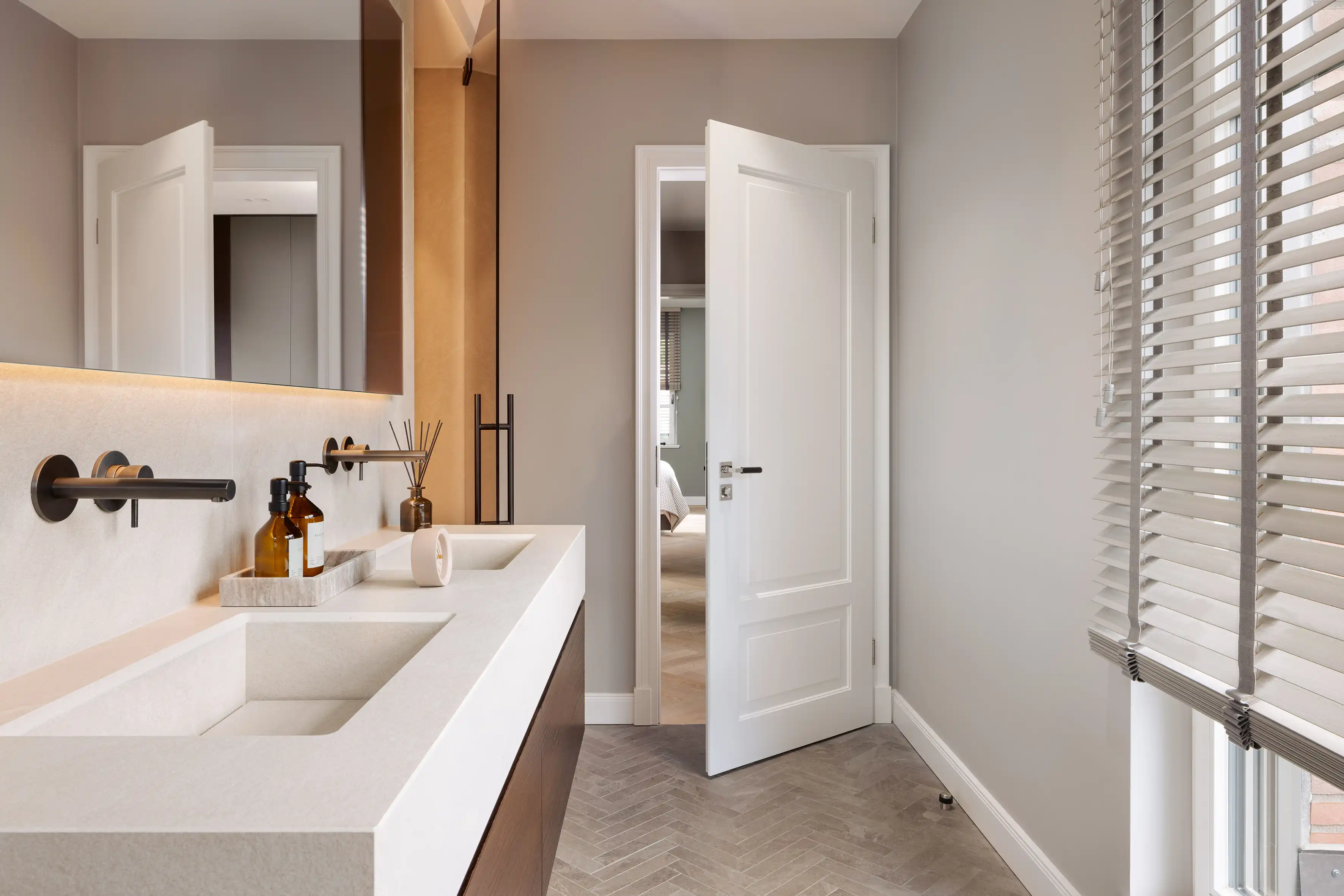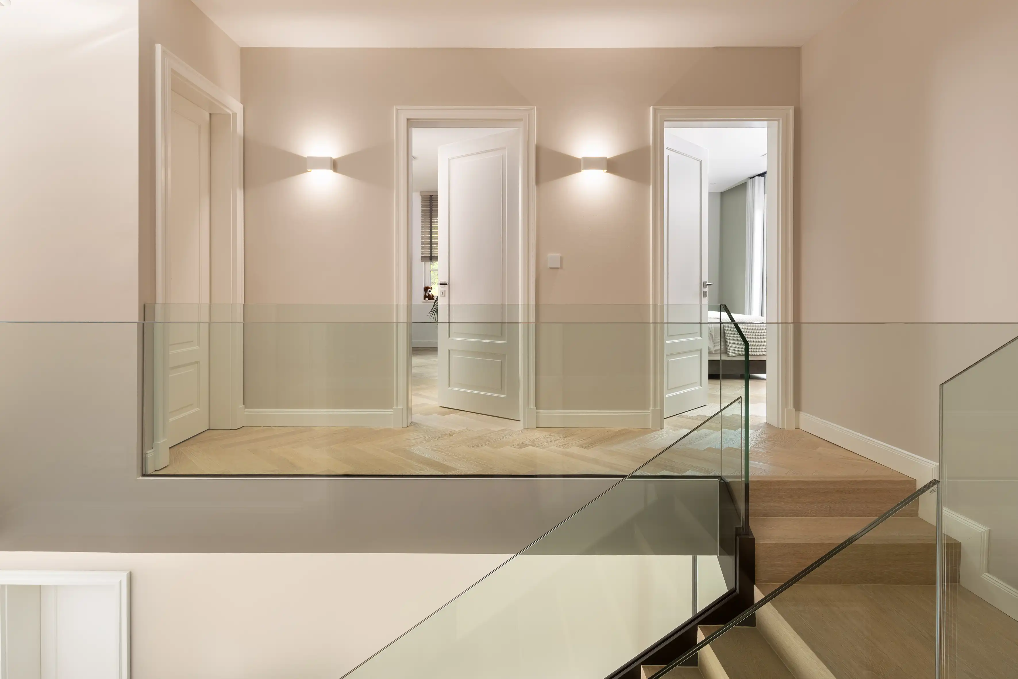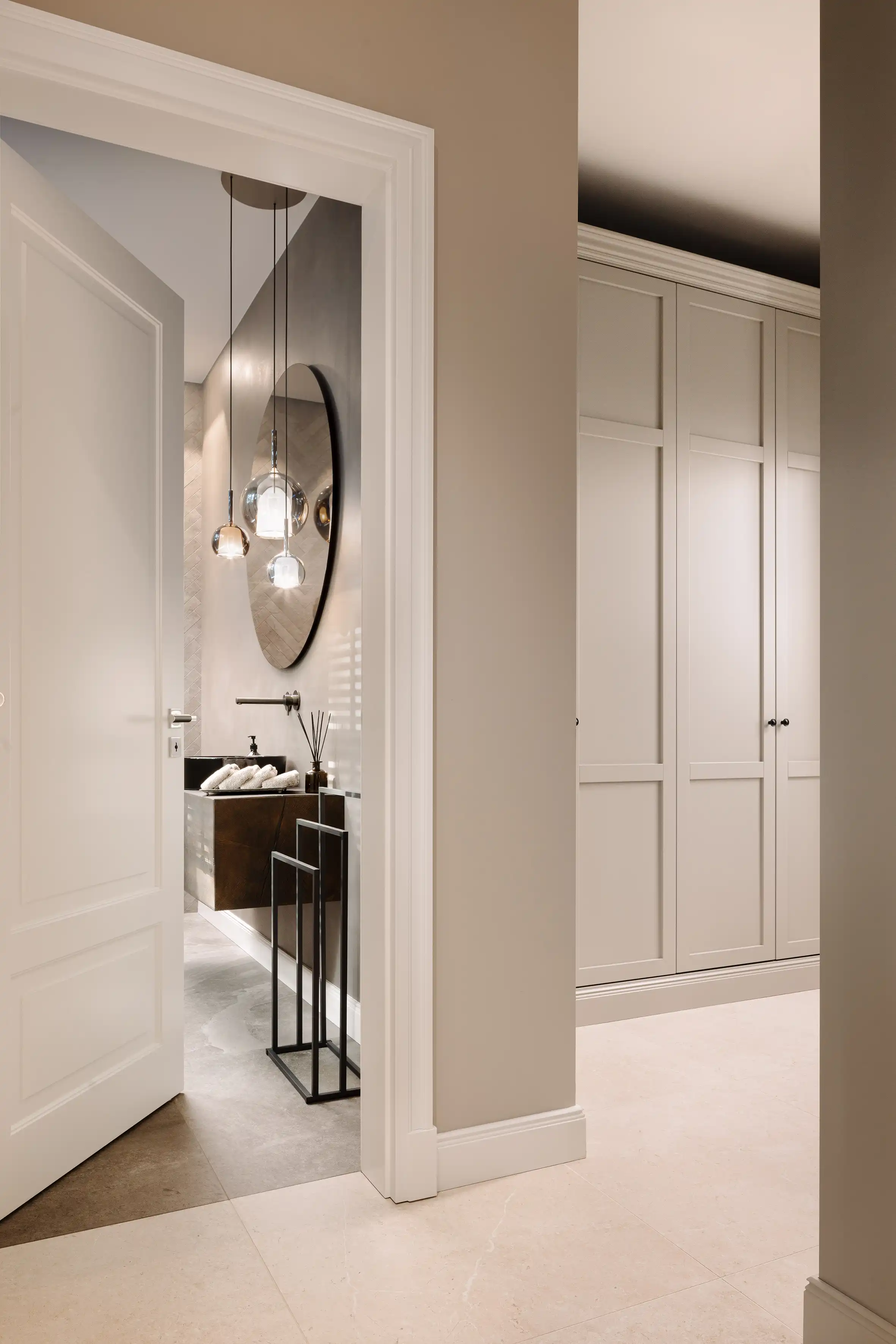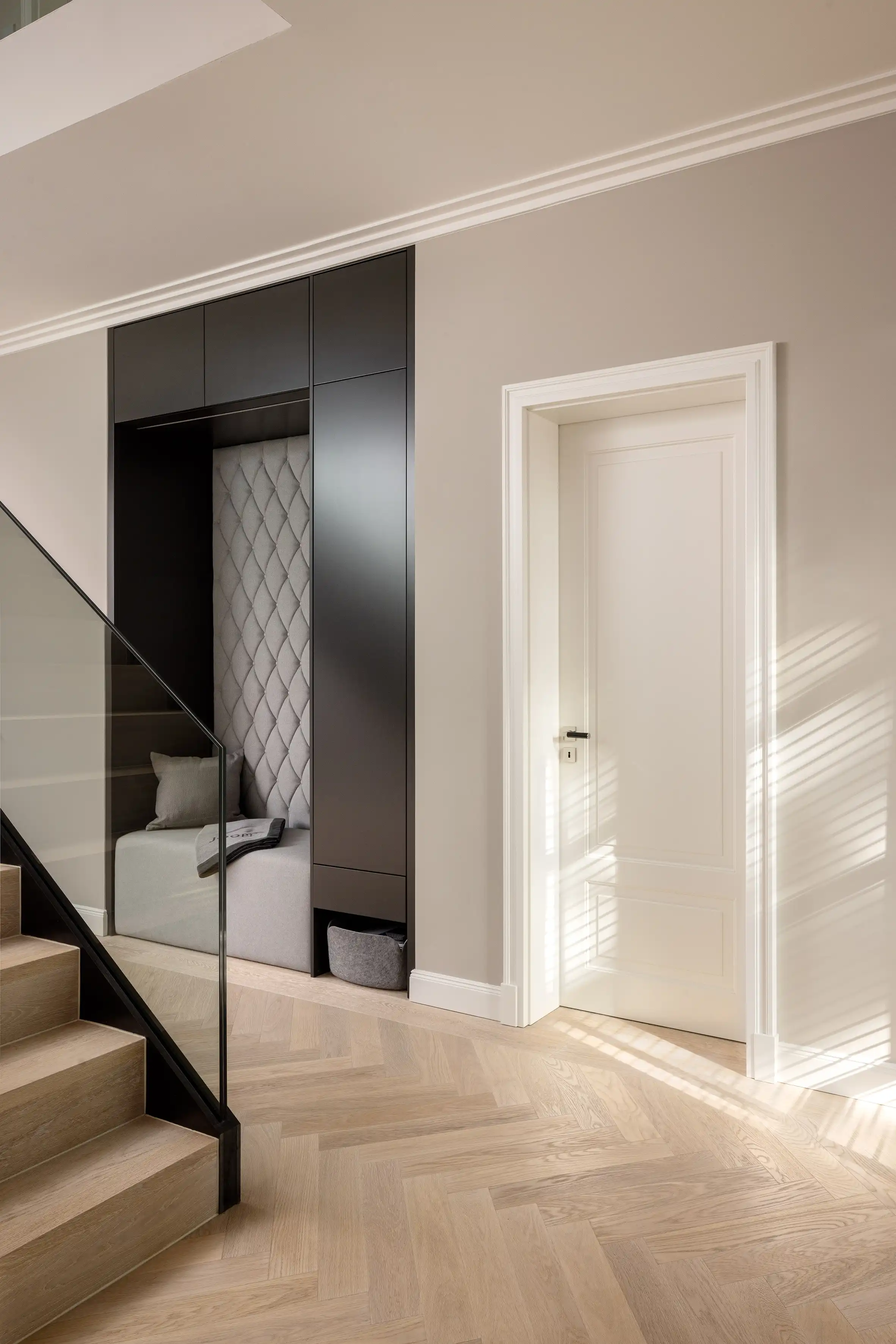 Dieses beeindruckende Privathaus, eingebettet in ein weitläufiges Grundstück, wurde von Grund auf saniert und mit viel Gespür für hochwertige Inneneinrichtung neu gestaltet. Die großzügigen Raumaufteilungen spielen gekonnt mit Licht und Weite. Entstanden ist ein luftiges, helles Ambiente, das unsere Denkmalschutz- und Villentüren mit einer beeindruckenden Höhe von 2,90 m perfekt ergänzen. Sehr schön zu sehen sind hier die gestalterischen Möglichkeiten, die die unterschiedlichen Modellvarianten von doppelflügliger Tür vs. einflüglig über geschlossen vs. mit Lichtausschnitten bis hin zur Schiebetür mit sich bringen.