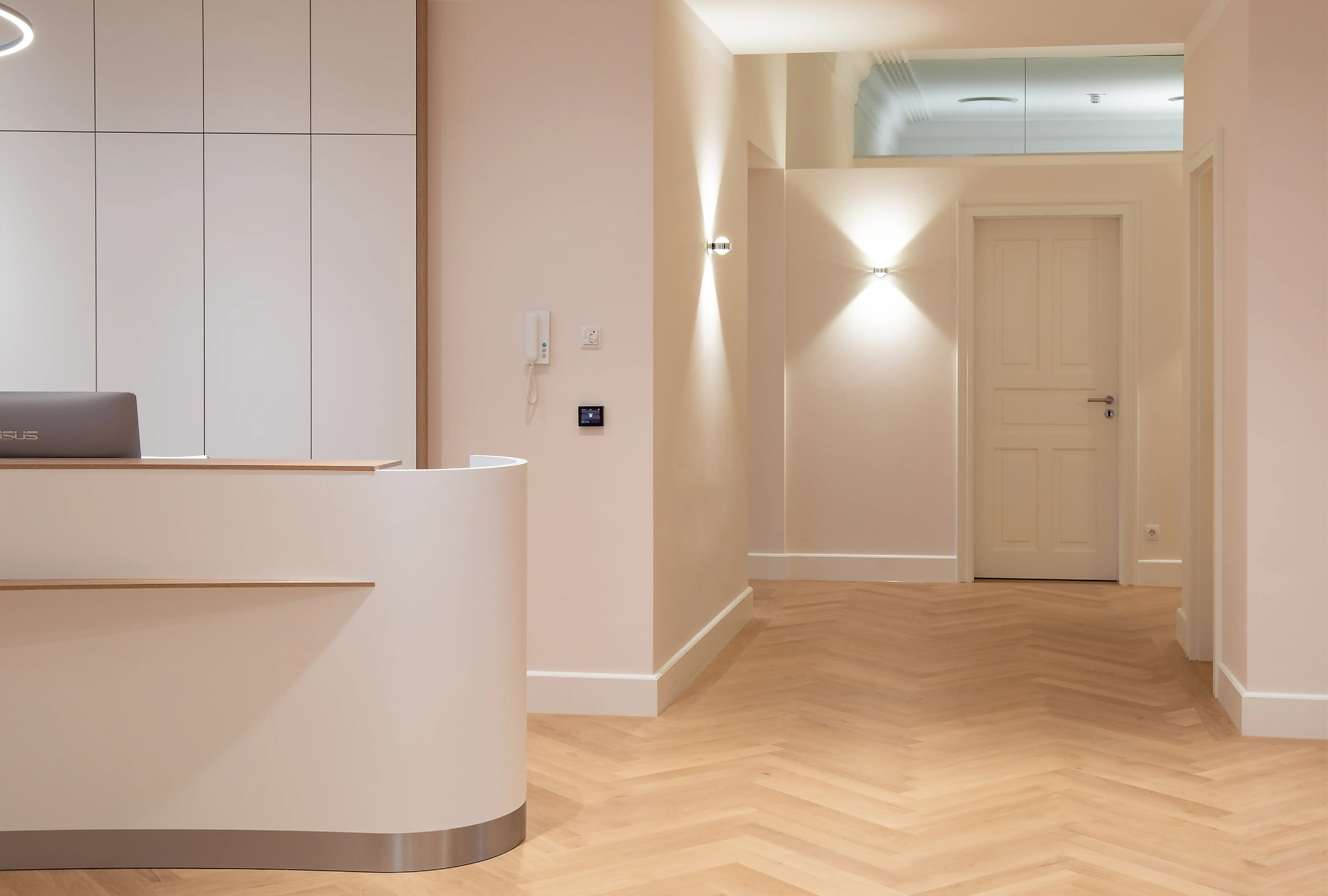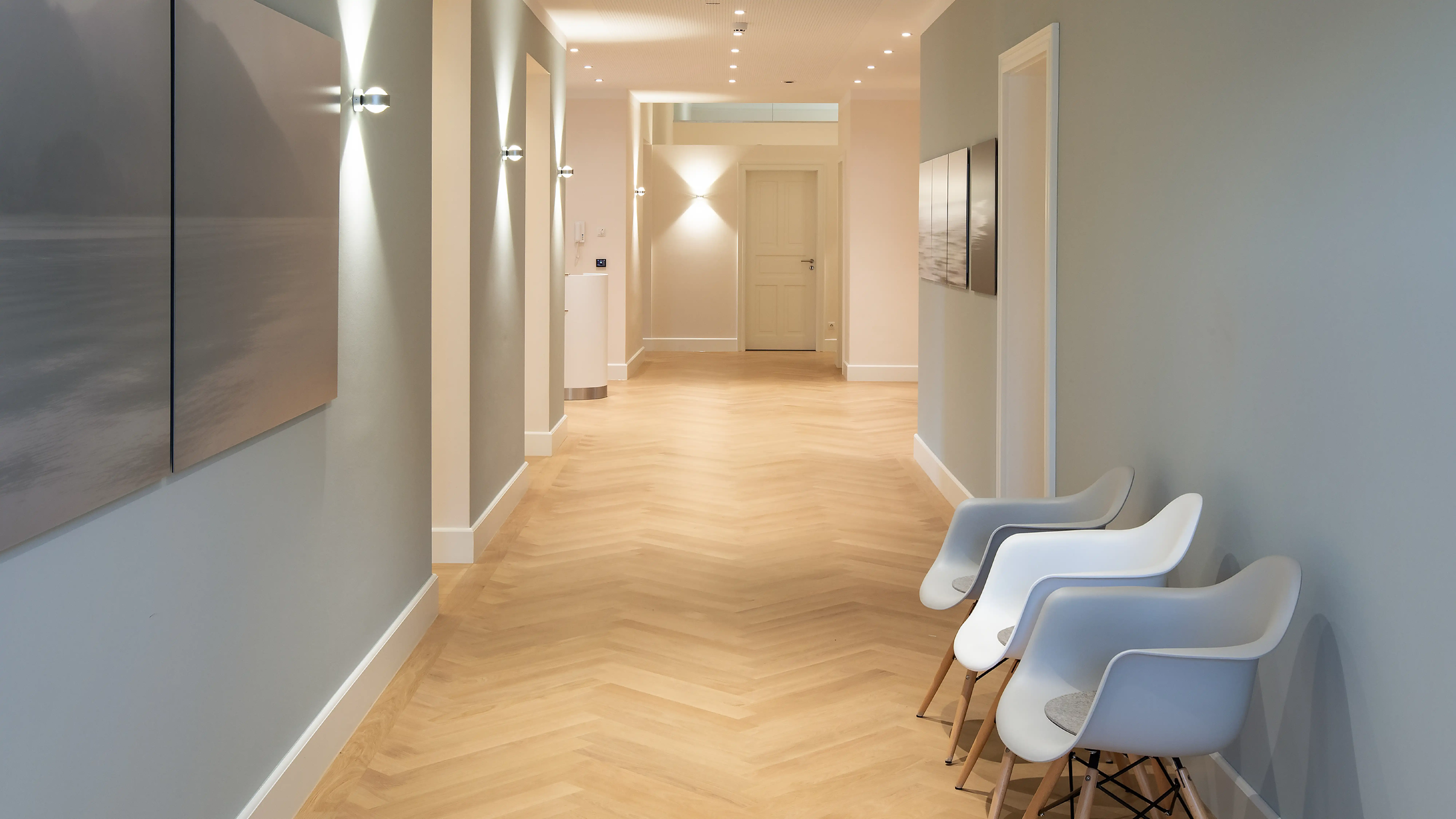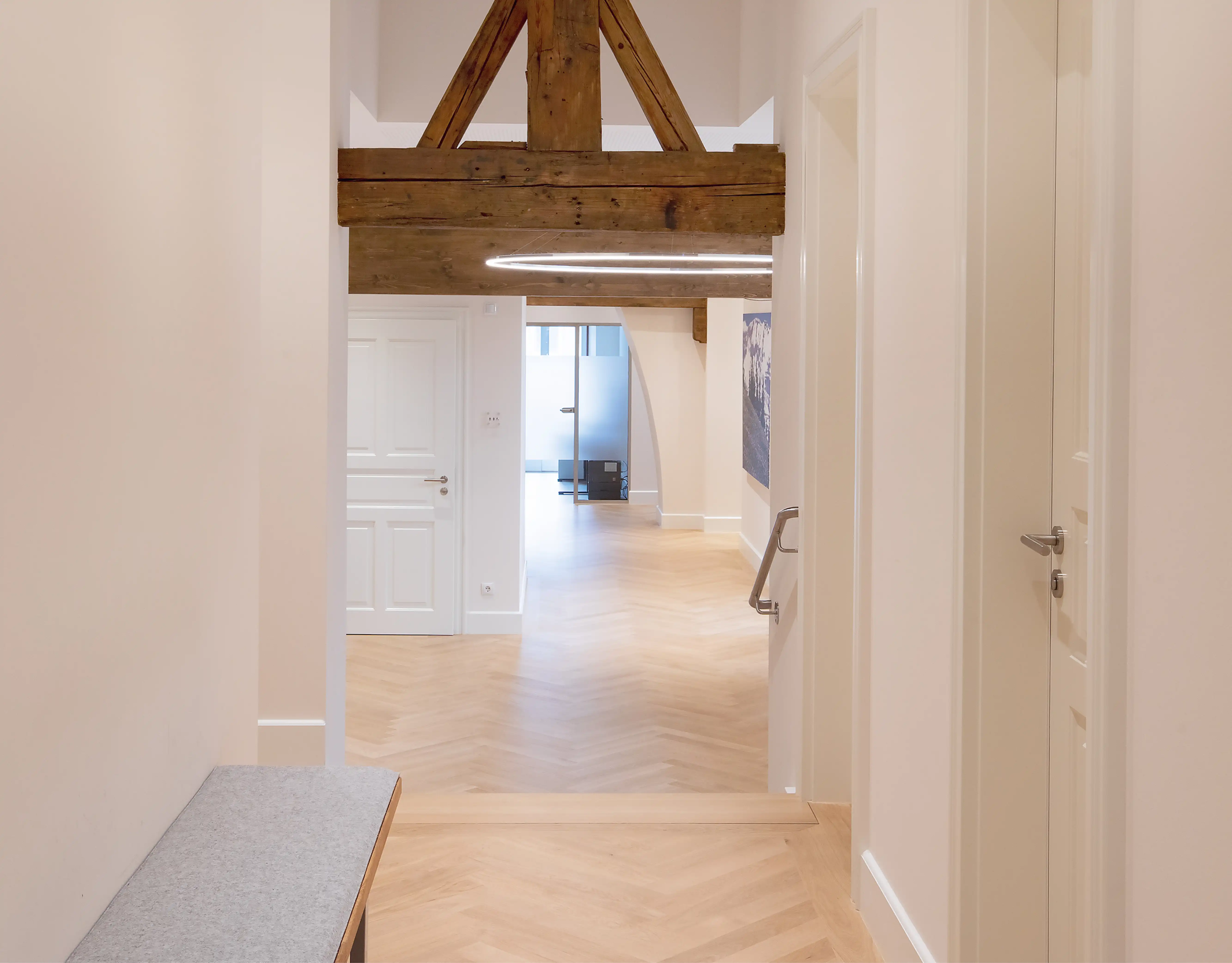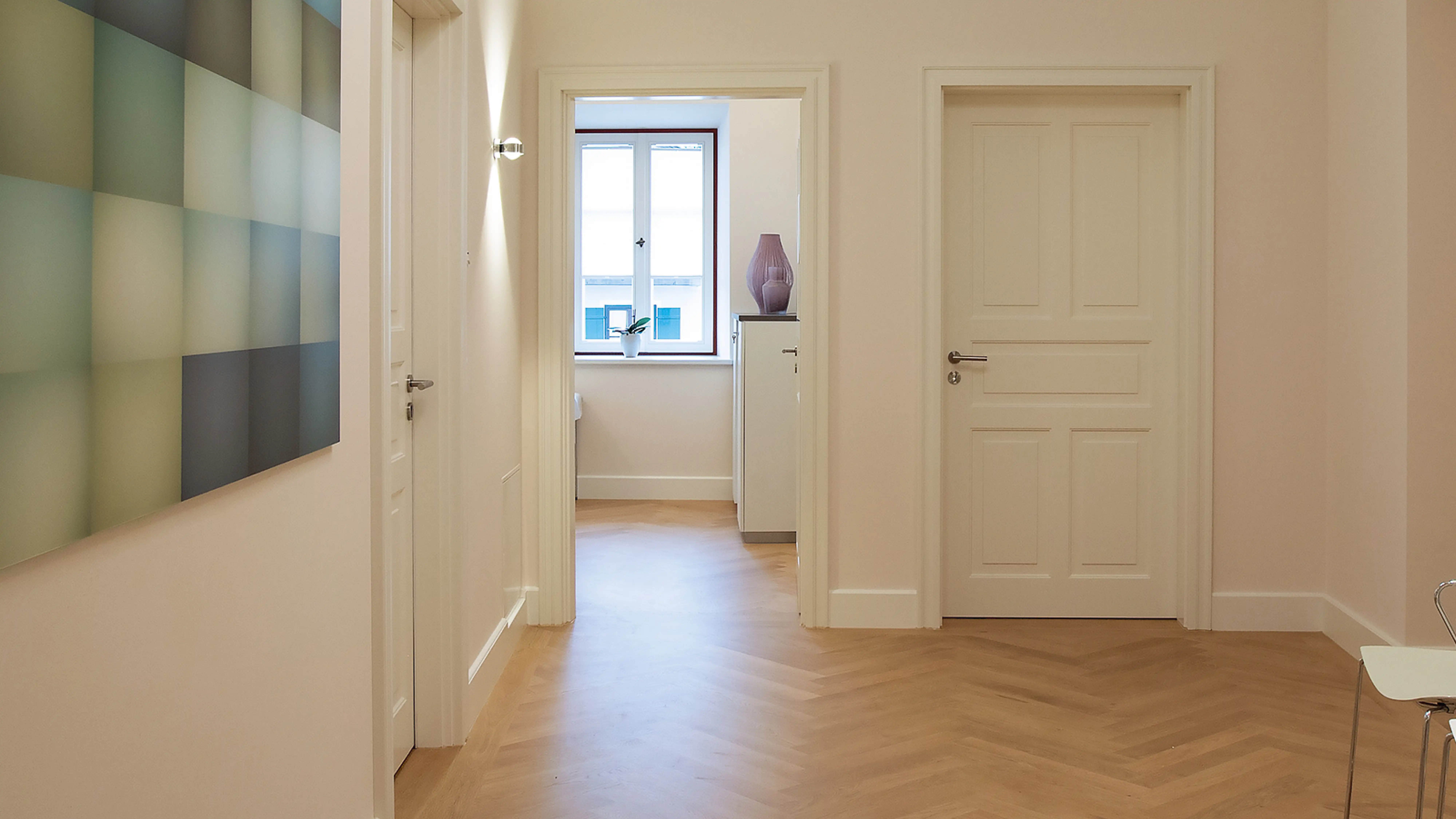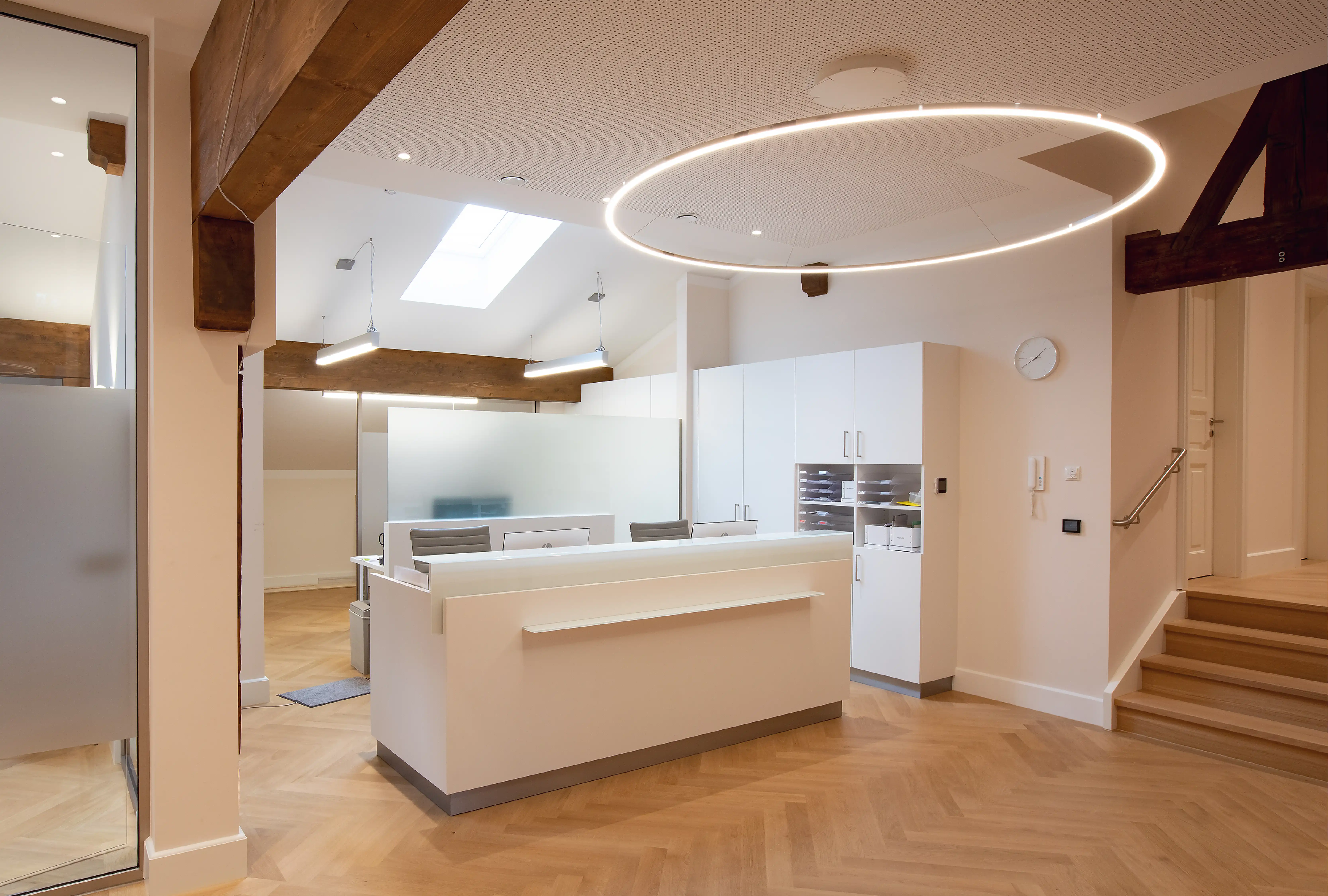 Rund ums ObjektModerne helle Arztpraxis in den Räumen eines denkmalgeschützten Traditionshauses am Tegernsee.Fotos Ute Hieke