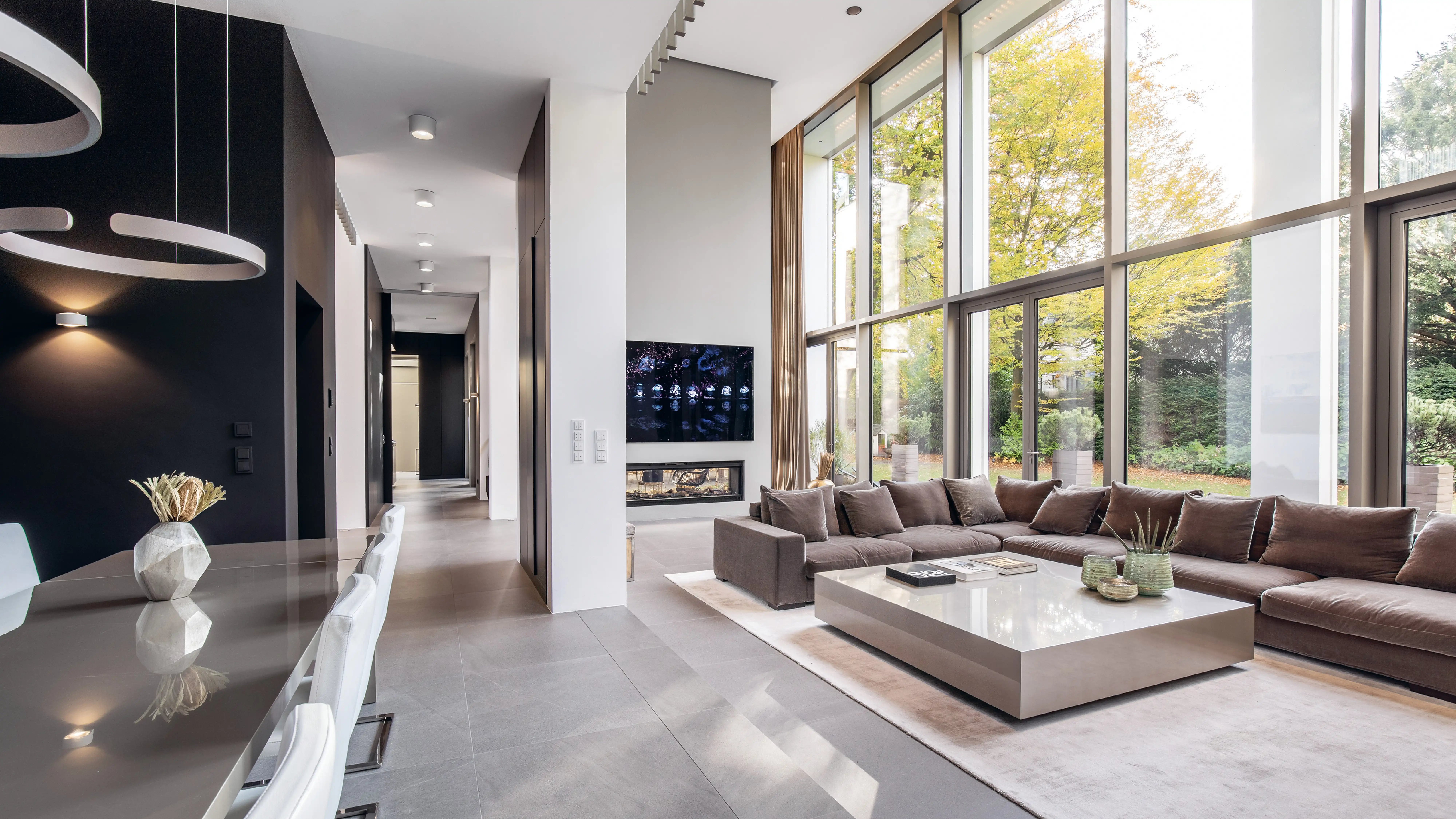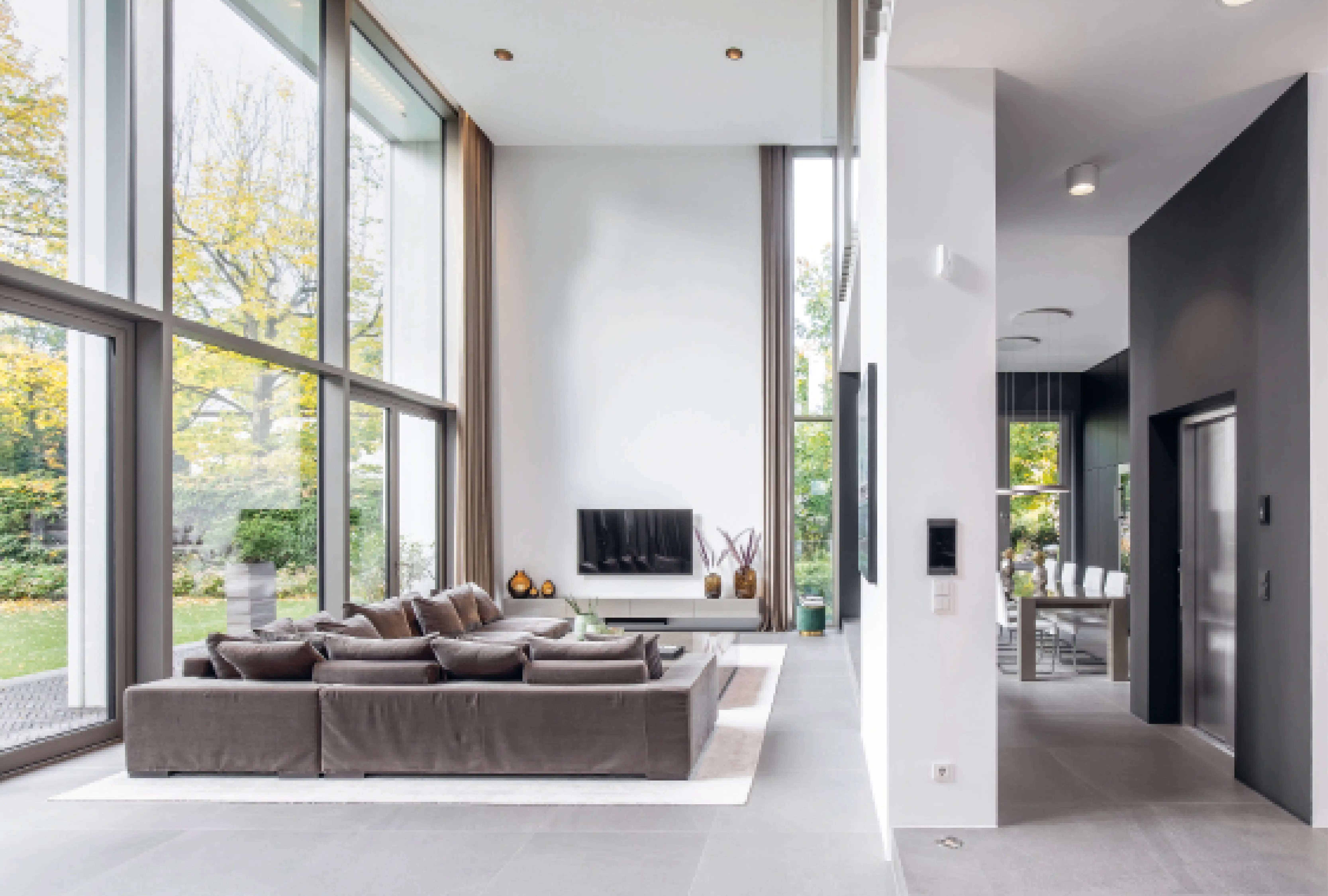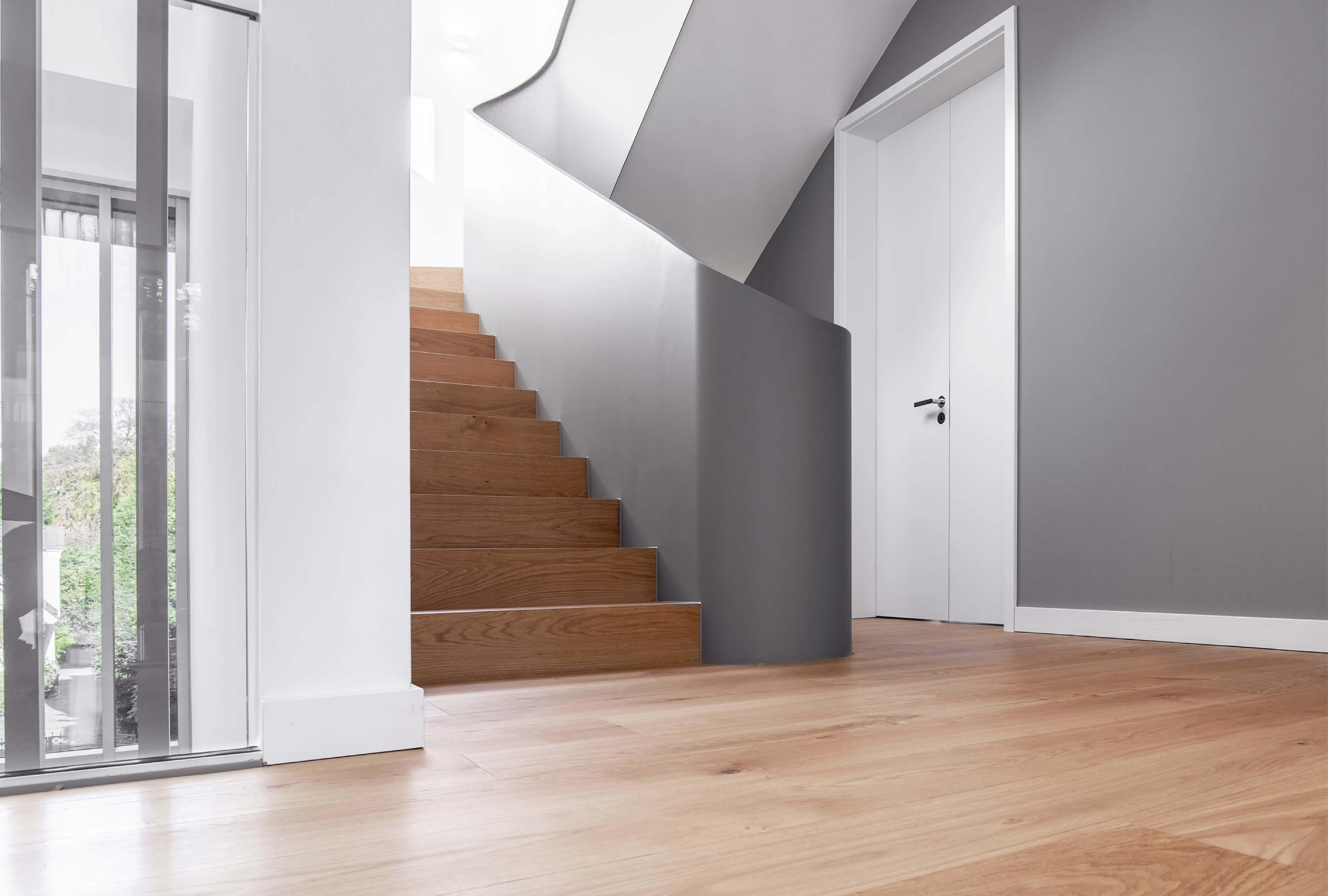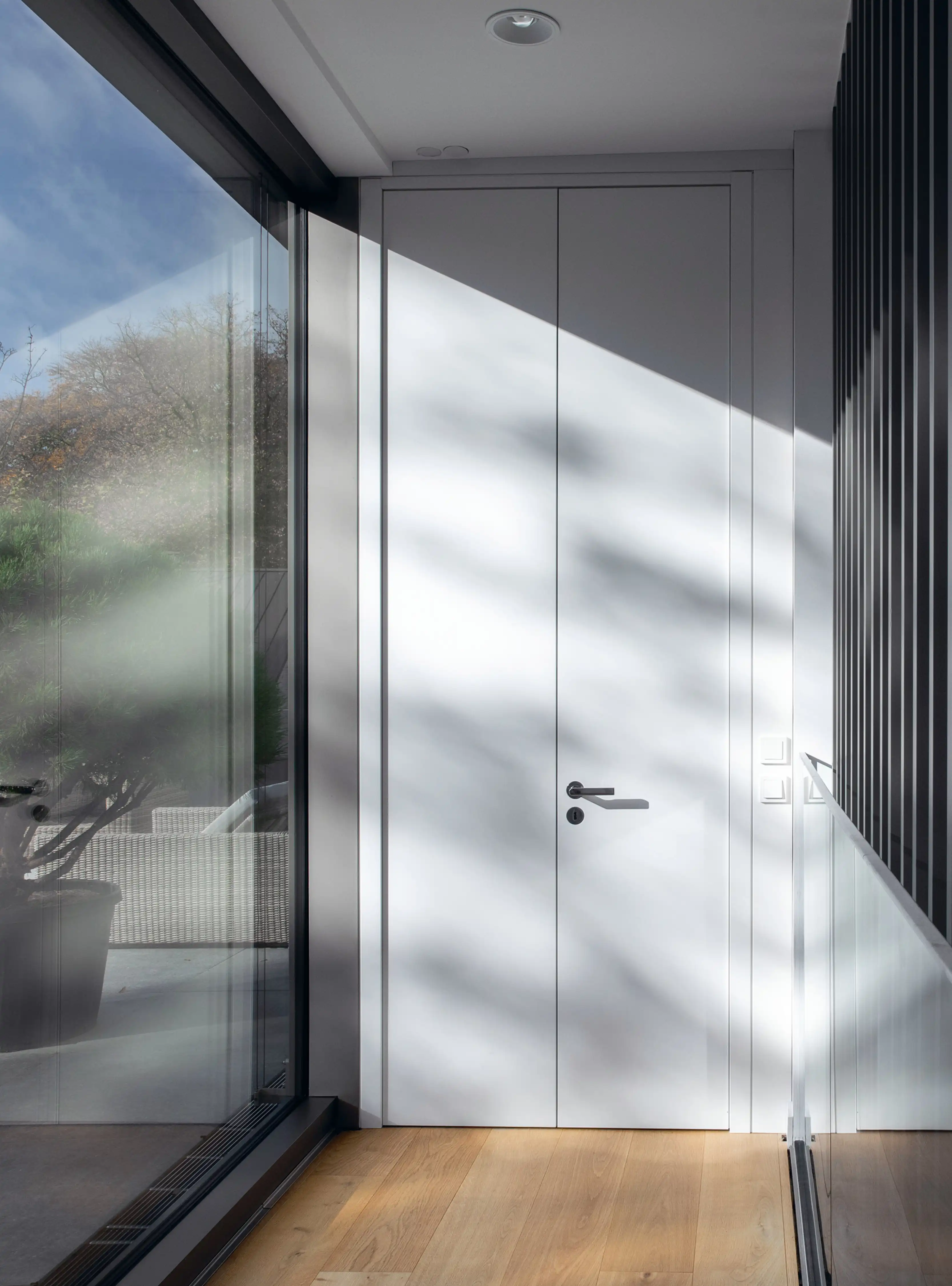 Dieses beeindruckende Privathaus, eingebettet in ein weitläufiges Grundstück, wurde von Grund auf saniert und mit viel Gespür für hochwertige Inneneinrichtung neu gestaltet. Die großzügigen Raumaufteilungen spielen gekonnt mit Licht und Weite. Entstanden ist ein luftiges, helles Ambiente, das unsere Denkmalschutz- und Villentüren mit einer beeindruckenden Höhe von 2,90 m perfekt ergänzen. Sehr schön zu sehen sind hier die gestalterischen Möglichkeiten, die die unterschiedlichen Modellvarianten von doppelflügliger Tür vs. einflüglig über geschlossen vs. mit Lichtausschnitten bis hin zur Schiebetür mit sich bringen.