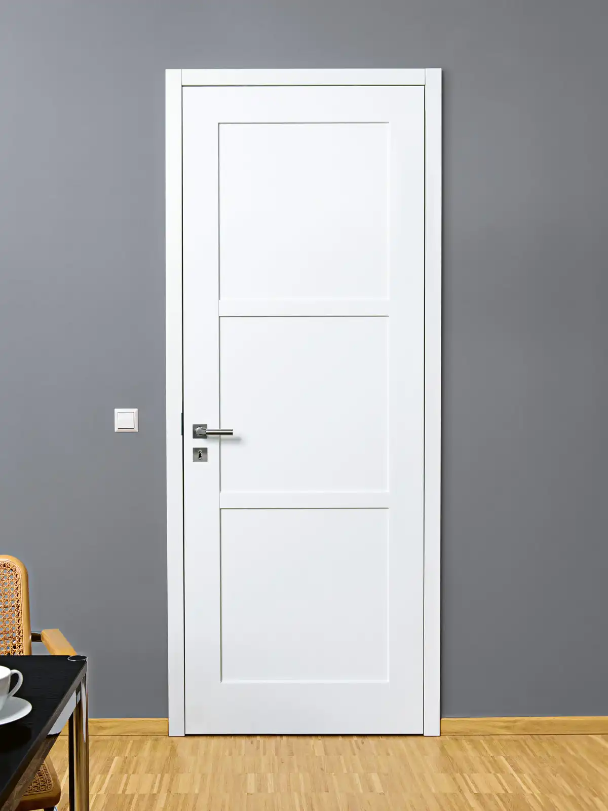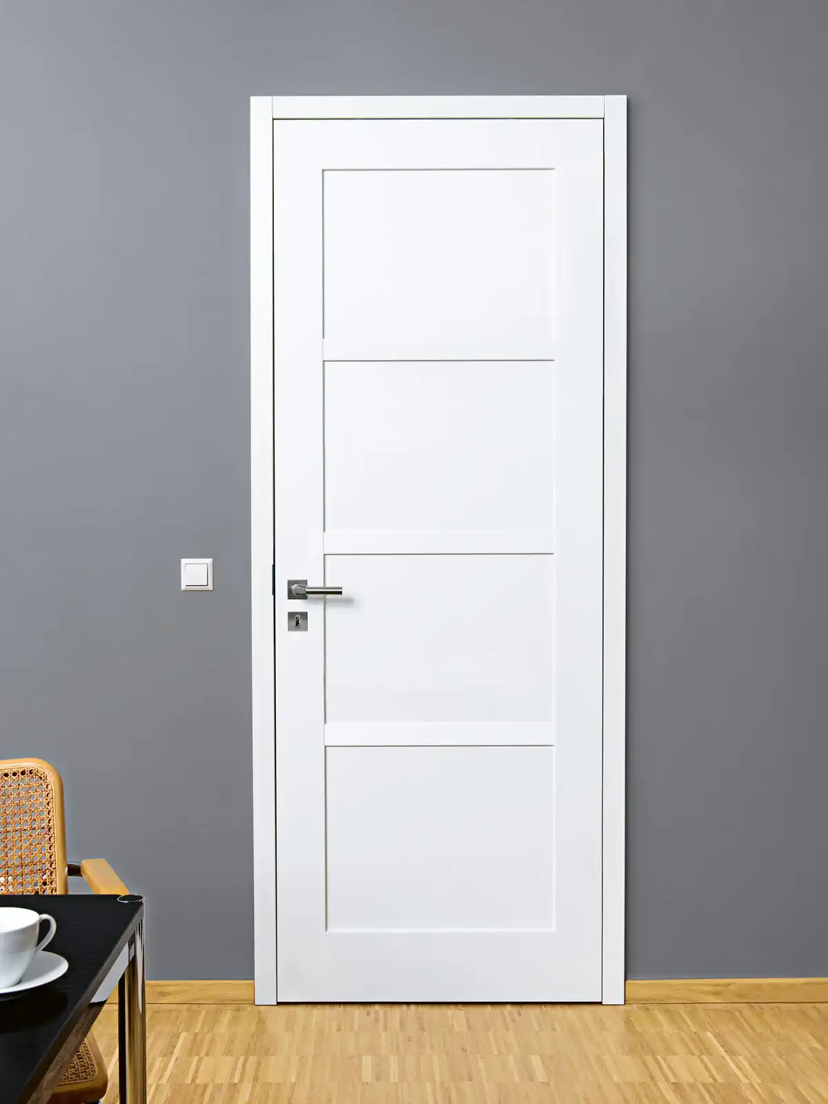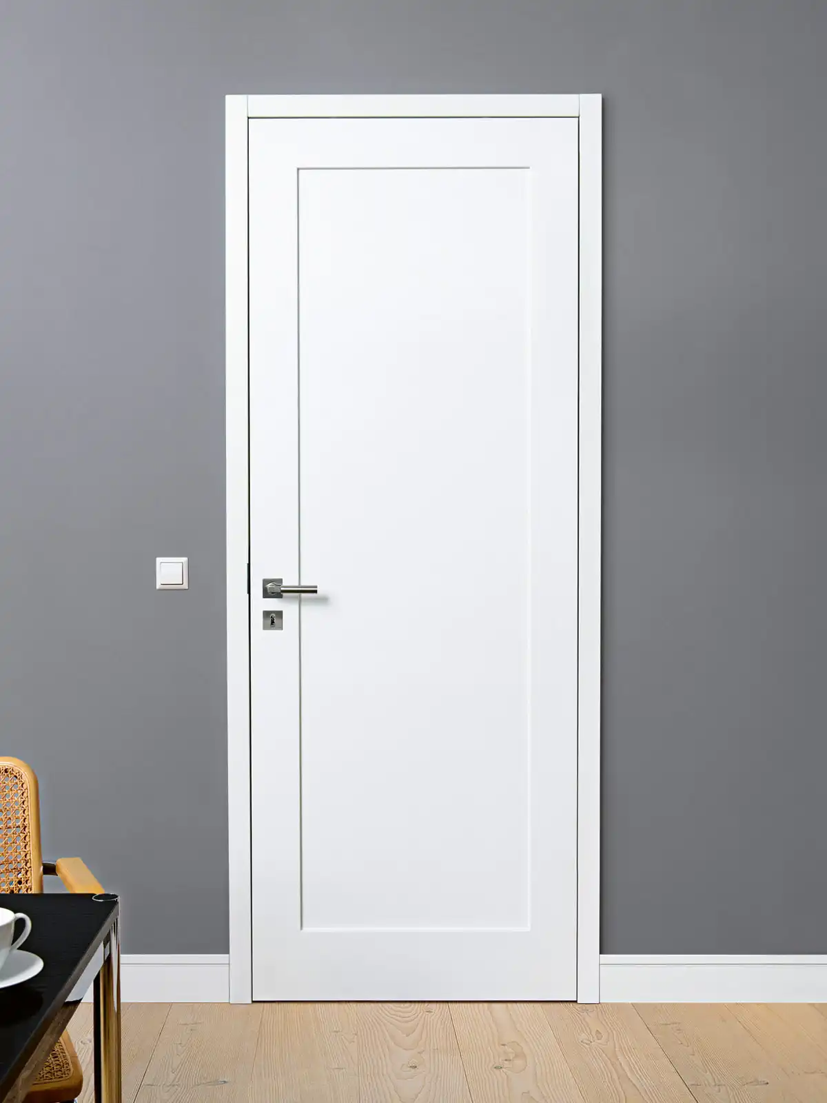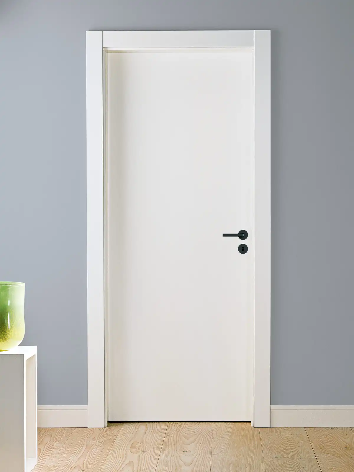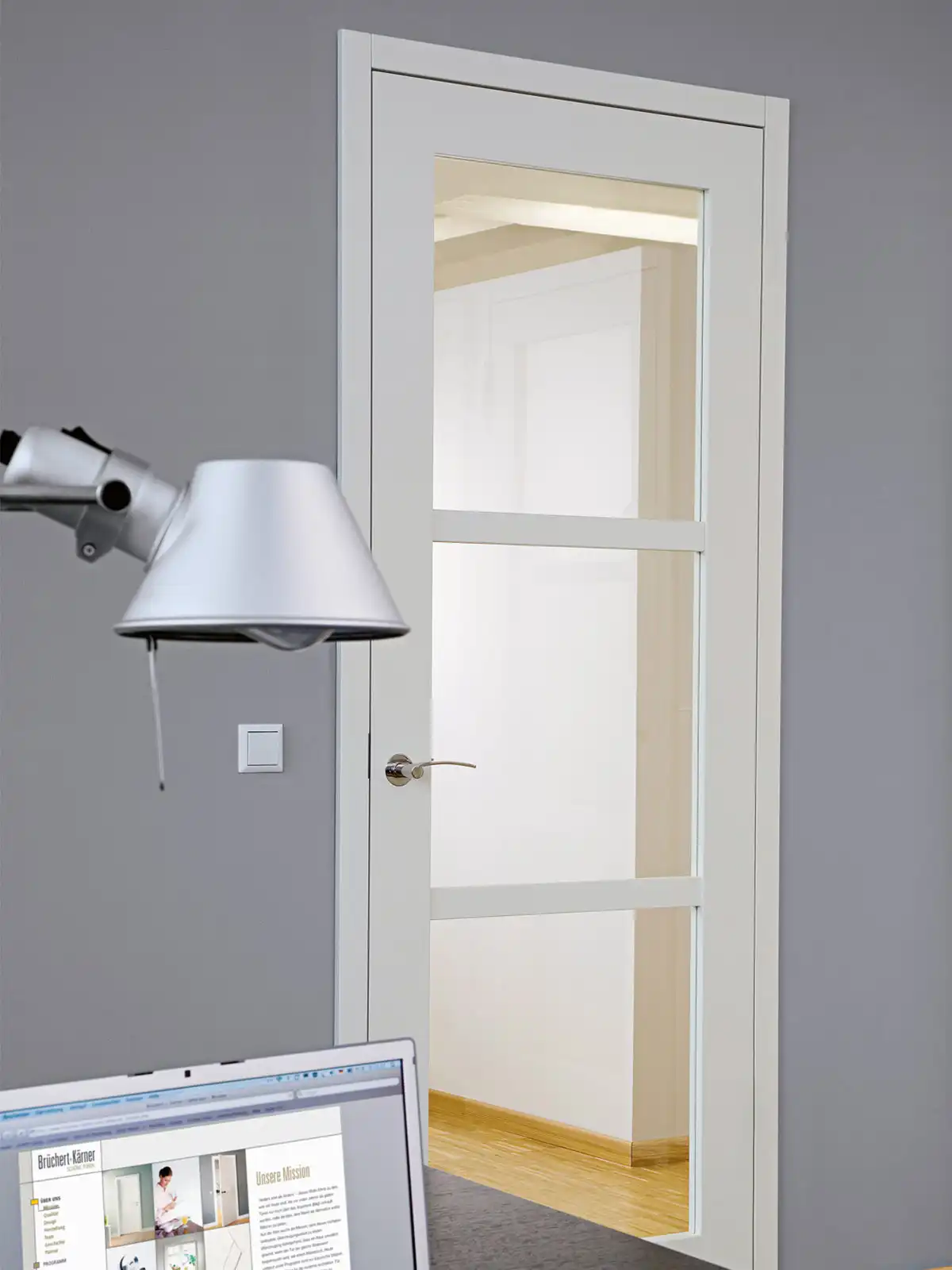 Duo unterscheidet sich durch die andere Art des Rahmens. Zur sonst üblichen 45° Gehrung ist hier eine stumpfe Zargenkonstruktion bestimmend. Duo berücksichtigt die Forderungen moderner Architektur: schmaler Rahmen, zurückhaltende Gestaltung, Drücker- und Schlüsselrosetten flächenbündig!