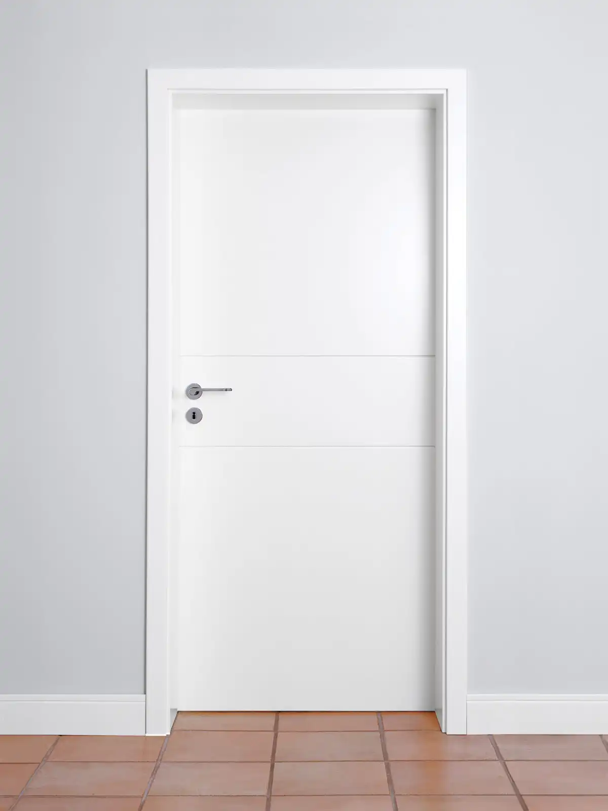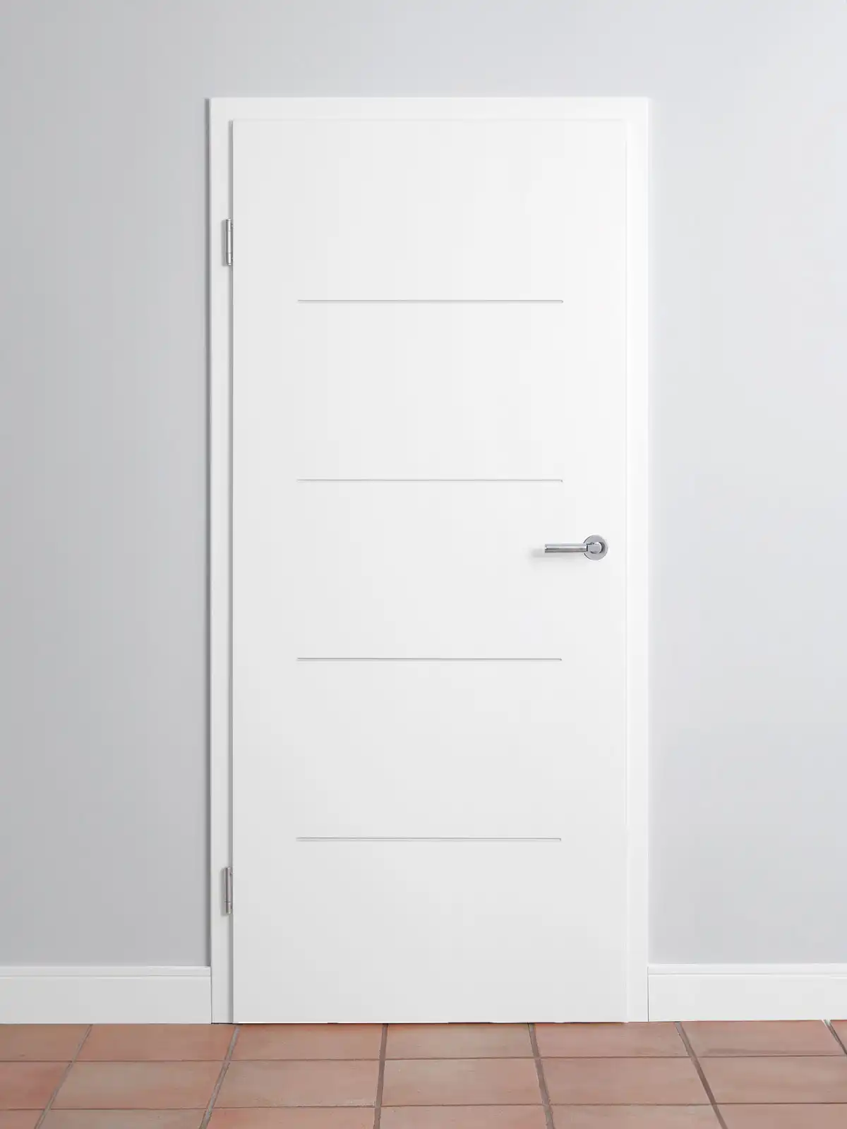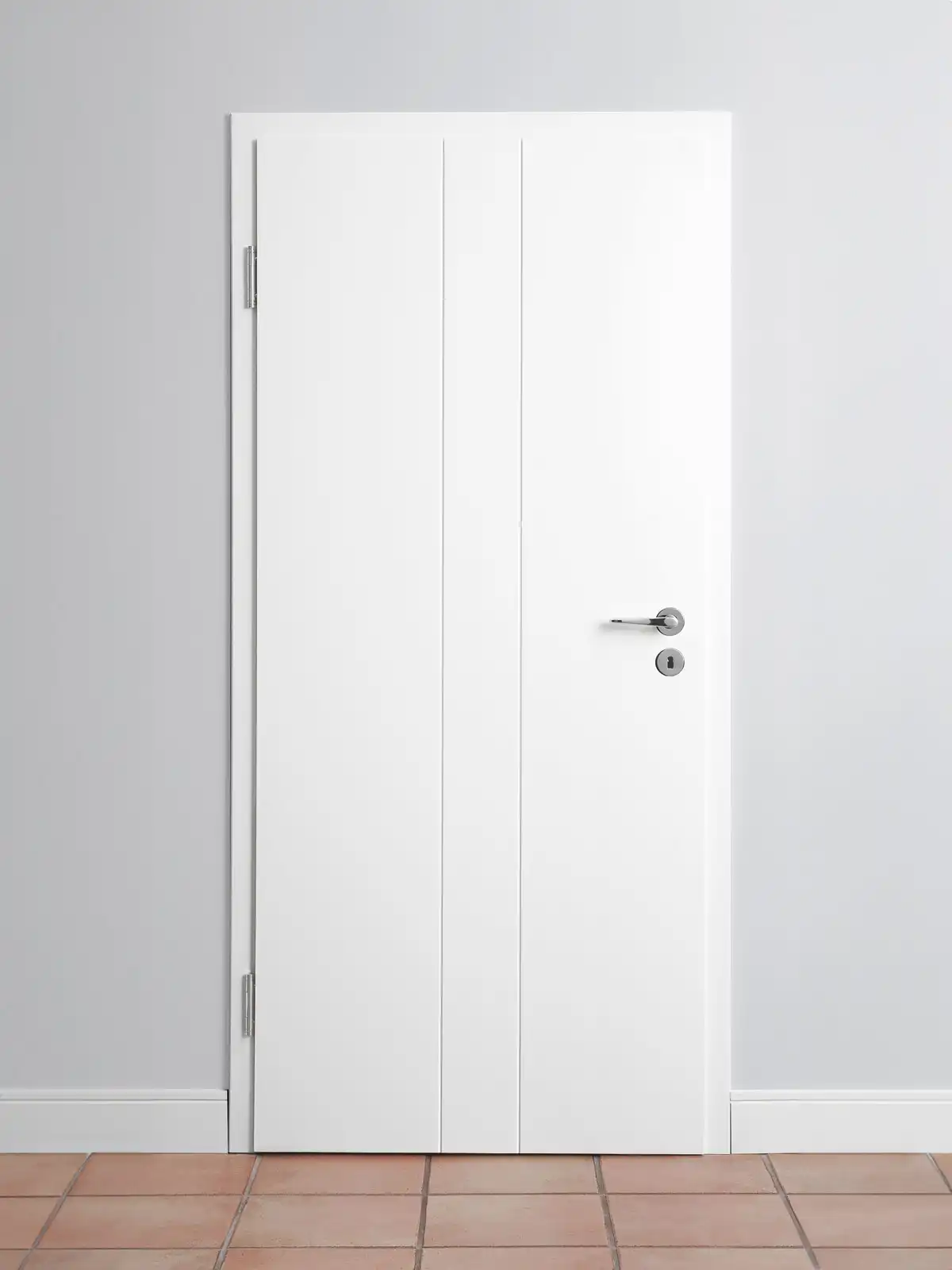 Diese moderne Designtür läßt zahlreiche Einrichtungsstile zu. Bei den gefrästen Linien mit klaren Konturen, können Sie zwischen einer V-Fuge und einer Trapezfräsung wählen. Sie geben der Tür Ausdruck, aber keine Gestaltungsrichtlinien vor.