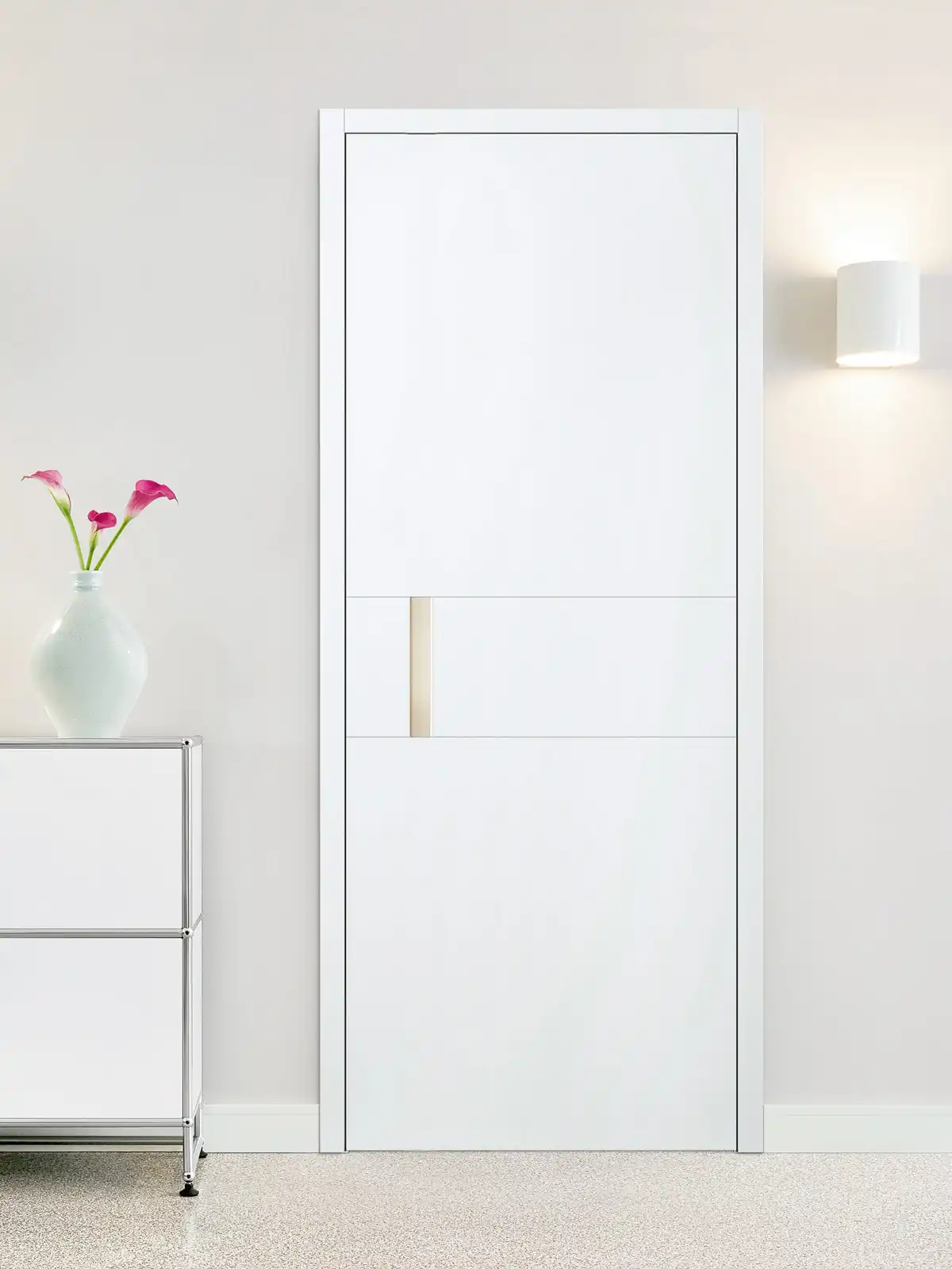 Freunde der puristischen Architektur werden diese Türen mit Freude wählen! Nichts Aufgesetztes stört. Kein Drücker, kein Schloss, keine Bänder. Sie entscheiden zwischen innovativem Griffband oder ganz schlichtem Griff. Einfach und reduzierter. Damit das Öffnen und Schließen leicht von der Hand geht, sorgen Magneten dafür, dass die Tür geschlossen bleibt.