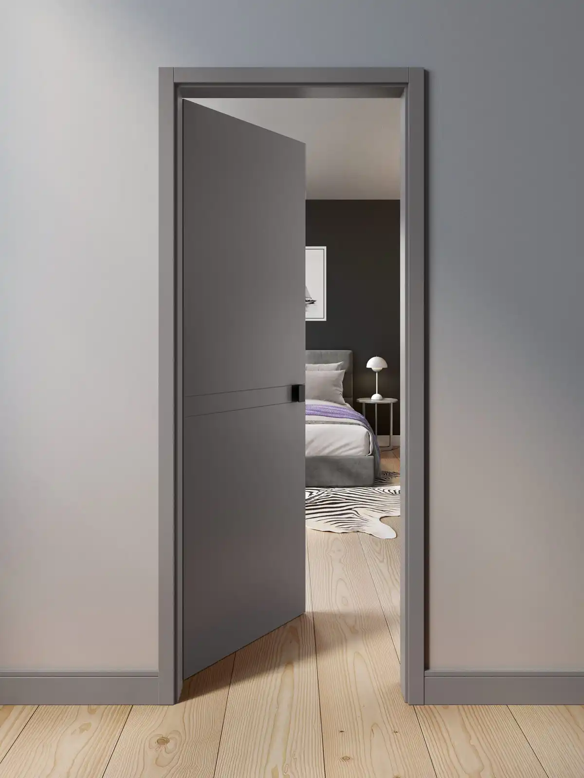 Look 4.2 | Zarge duo 55 | Farbe Platingrau RAL 9036 softmatt | Griff Schwarz