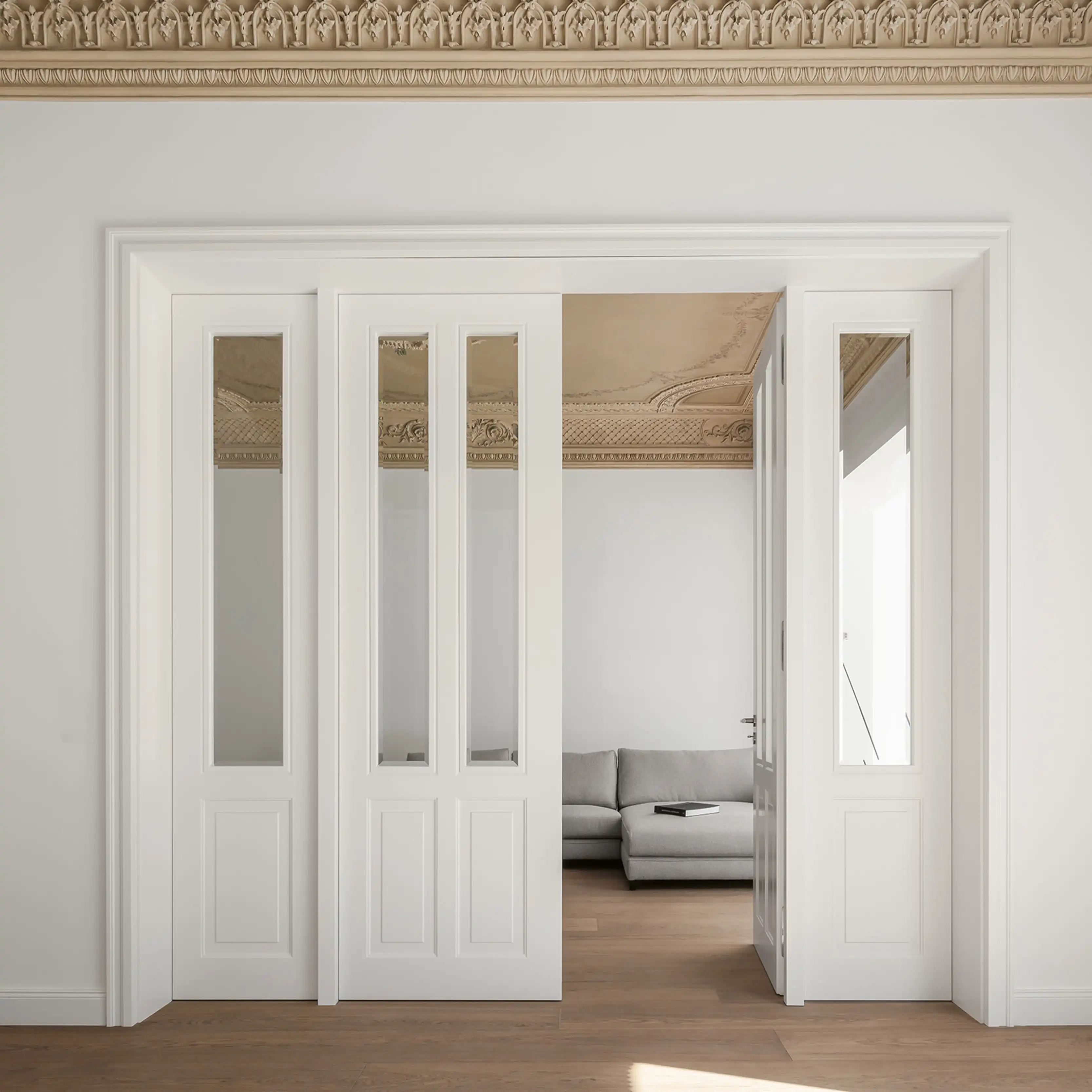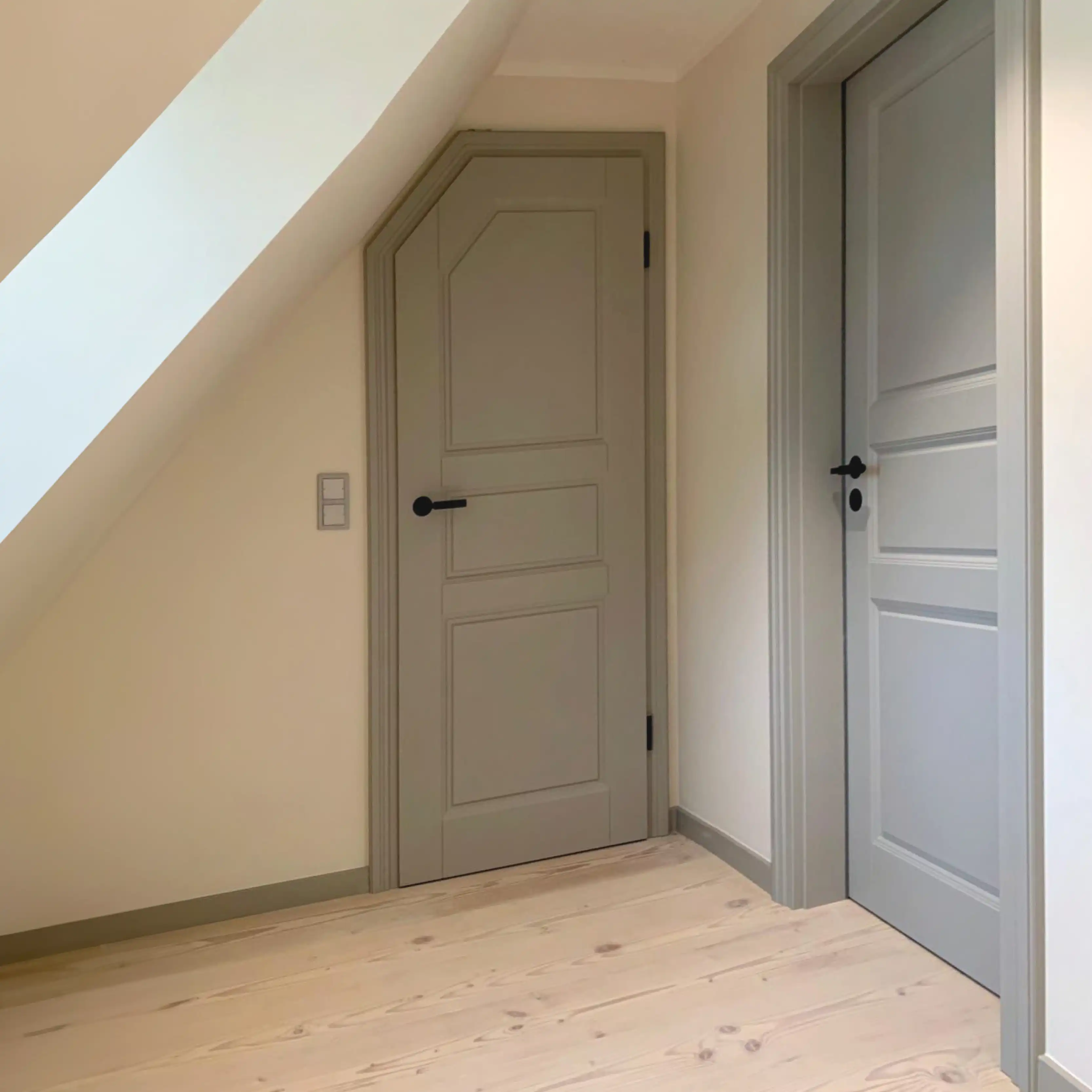 Für jede Modellserie bieten wir passende, stilgerechte Zargen. Auf Wunsch auch als zusammengebaute Version ohne sichtbare Gehrungsfuge. Fußleisten in 4 verschiedenen Varianten, stilistisch und farblich passend, runden das Gesamtbild ab.